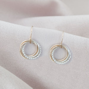 These silver and gold 40th birthday earrings would make an ideal gift for any woman who is just about to turn forty. Handcrafted from 925 sterling silver and 14ct Gold-fill wire, each earring features a charm made up from four interlinked and free-moving rings to represent each of the four decades the recipient is celebrating. The rings are all slightly different to emphasise the fact that each one represents a different decade in the recipients life and when joined together they symbolise wholeness, strength, unity and everlasting love. Each completed charm measures approximately 13mm in diameter.