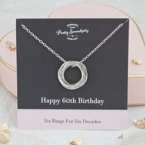60th Birthday Necklace – 6 Rings for 6 Decades – Sterling Silver – Textured