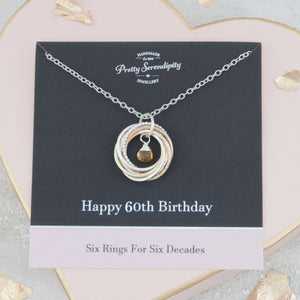 60th Birthday Birthstone Necklace – 6 Rings for 6 Decades – 9ct Gold and Silver