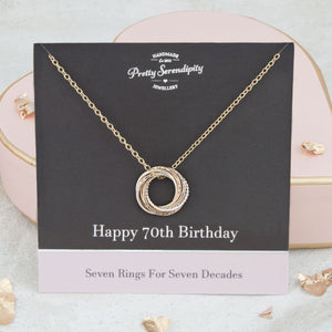 Mini 70th Birthday Necklace – 7 Rings for 7 Decades – Silver and Gold