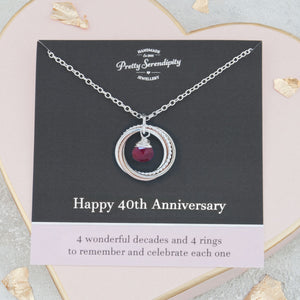40th Ruby Anniversary Necklace – 4 Rings for 4 Decades – 9ct Gold and Silver