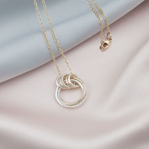 The rings that make up this pendant are handcrafted from 925 sterling silver and 14ct gold-fill wire and they are all slightly different to emphasise the fact that each one represents a different decade in the recipients life.